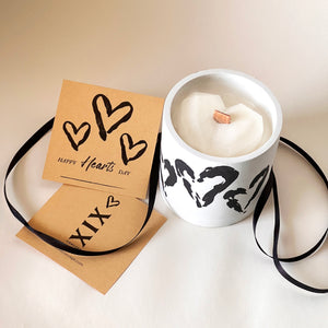 A hand-painted concrete candle with a secret message hidden inside the wax (using letter beads). It's a lovely way to surprise your special someone with a candle featuring your preferred fragrances.